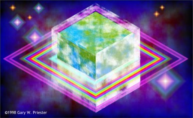 As usual I couldn't leave well enough alone. I duplicated the background, changed the colors to red and white as shown in the small inset, and applied a Diamond Transparency. I brought the cube top, and colored bands to the front. I created two diamond shapes (also shown) and applied a Diamond fill using the Alt Rainbow option and added a Diamond transparency. I created a second diamond shape, made a smaller duplicate, and applied a Diamond, Mix transparency.