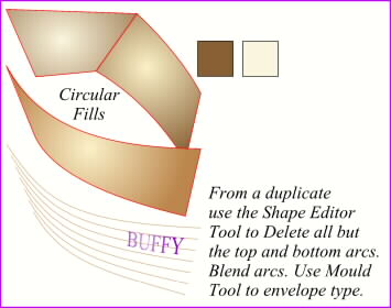 To navigate our water button, we’ll need a boat. Rough out a side with the Pen Tool then use the Shape Tool to curve it. Add a Circular Fill. Create a duplicate of the side and use the Shape Tool to eliminate the two straight sides leaving just the two curved lines. Create a Blend of the two curved lines. Name your ship and use the Mould Tool to envelope the shape to mimic the curved lines. Use the Pen Tool to create the rear and far sides of the boat. Copy the fill from the first side and Paste Attributes to the rear and far sides.