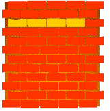 Next we’ll need some bricks for the back of the fireplace. Draw a rectangle and Convert it To Curves. (Ctrl Q) Make several duplicates (shown here in yellow) and use the Shape Tool to modify them slightly so that they are irregular in shape. Use the bricks and duplicates to fill out two rows and then duplicate the rows to fill in the background.