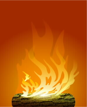 I brought my original line drawing into Xara, made a new log shape which I filled with a bark Texture Fill, created a black and white shading overlay which I made semi-transparent to give the log shape. I used Xara’s Mould Tool (similar to Corel’s Envelopes) to add an undulating quality to the flames. Xara’s transparency options make it easy to fade the flames in and out creating a really believable flame.