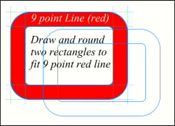 Select the middle rectangle and change the line weight to 9 points (as shown here in red.) You may need to increase or decrease the line weight to fit between the original two rectangles. If the thick line does not exactly fit the two original rectangles, draw two new rectangles to fit the red line. (I told you this was convoluted!)
