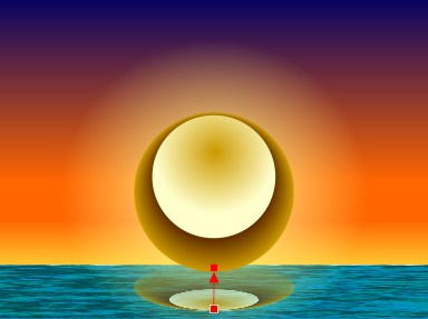 Position the bitmap reflection and the gold sphere over the background as shown. Select the bitmap reflection and using the Transparency Tool (the wine glass button) apply a Linear Transparency, Mix. Make the bottom value 10% (using the slider on the Property bar) and the top value 100% (totally transparent).