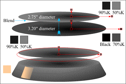 Draw two ellipses using the sizes and Elliptical Fills shown. We'll Blend these to create a base for the snowperson sphere. Offset the center of the fills to the right. Make a duplicate of the smaller ellipse, drag the center of the fill to the lower center portion of the ellipse. Apply a 50-Step Blend to the two original ellipses. Place the duplicate ellipse on top. Draw a pale orange highlight shape using the Pen Tool. Use the Shape Tool to round the top and bottom sides to conform to the ellipses. Apply a Linear Transparency. We're just about through!