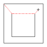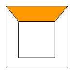Draw two squares as shown on the left. Center them horizontally but let the inside square be a bit lower. Turn off Snap To Grid and turn on Snap To Objects. (Arrange-Snap To Objects) With the Pen Tool, draw the top section (shown below in yellow). After drawing each line segment, double click on the anchor point to add the next line segment. Click once on the first anchor point to complete the beveled panel.