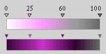 Create two Custom Fountain Fills matching the settings on the right. Draw and fill two squares, one with each fill. (These will be used only as targets to copy from.) The fills will create the illusion of illumination caused by the neon light.