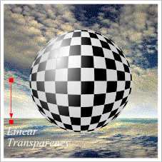 Select the upper sky-filled rectangle, click the Transparency Tool (the wine glass icon) and from the Transparency Type drop-down list select Linear. Position the directional fill arrow as shown so that the transparency begins about two thirds of the way down and ends about 1/8th inch below the top of the bottom rectangle. This brightens the horizon portion of the sky/atmosphere.