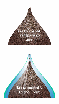 Center the sand elements over the blue and green background shapes and bring the highlight to the front (Ctrl-F). Make a very small circle and apply the sand fill. Make several duplicates of the small circle and arrange then so they appear to be grains of sand filtering into the bottom half of the hour glass. I did mention we were making an hour glass, didn't I?