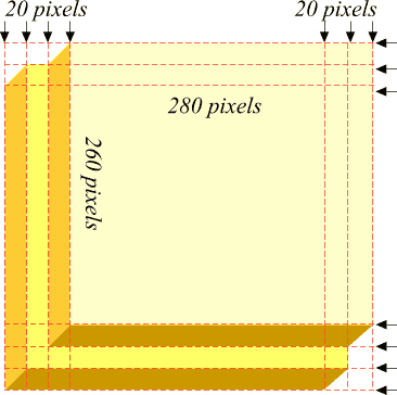 With the Rectangle Tool, construct a rectangle 280 pixels wide by 260 pixels high. Add guidelines as shown 20 pixels apart. Use the Pen Tool to create the additional shapes shown. The "L" shaped shape is one shape.