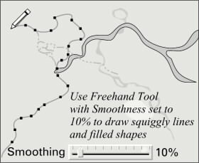 Marble has a lot of veins running through it. To create these veins, use Xara's Freehand Tool, with Smoothing set to around 10. (We don’t want the veins to be very smooth.) Draw some squiggly lines. This is like doodling on a scratchpad in a meeting. Also create some slim shapes by drawing back along the line until you reach the starting point. This creates a realistic, thin-thick line. Use shades of gray instead of color because we will be applying color later.