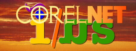 This animation has three main elements, the red sky, the CorelNET logo, Circular-filled with the fill centered on the cross hairs of the O, and the spiffy i/us logo. Two additional elements are a starburst over the dot in the i of i/us and the solid background over the sky.