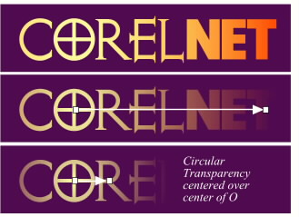 A Circular Transparency is applied to the CorelNET logo with the center directly over the cross hairs in the O. As the animation continues the circle of transparency is reduced until just the O is left creating the illusion of the logo fading into the center of the O. The smashing i/us logo is about to make its appearance, and not a moment too soon!