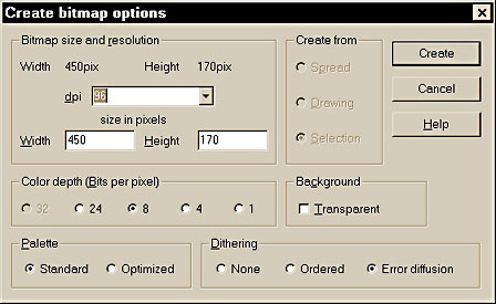 Each frame has to be separately converted to a bitmap. Select all the elements in the frame and from Arrange select Create Bitmap Copy. Set the dpi to 96 (Windows resolution), set the Color Depth to 8 bits, Palette Standard (this uses the Netscape palette) and Error Diffusion. Click create. Repeat this process until all frames have been converted to bitmaps.