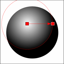 Draw a circle the same size as the enveloped beach ball, apply a Black fill with no outline. (To turn off the outline, click on the cross-hatched square to the left of the screen palette with the right (as opposed to the left) mouse button). Select Circular from the Fill Type drop-down list and drag the center up and left as shown in the illustration on the left.