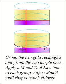 Center each fill group as shown in the top example (right). Apply a default Mould Envelope and use the Bezier handles to shape the two groups. This takes a little patience but gets easier once you get the hang of it.