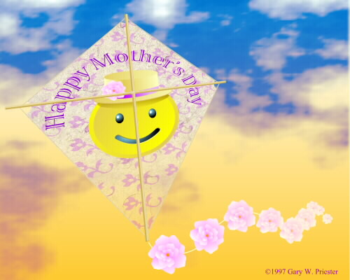 As promised, here’s Smiley Mom not only higher than a kite, but a kite to boot. Truth in advertising (an oxymoron?) dictates that I reveal that at the last minute I added a Linear Transparency to the paper portion of the kite. This imparts a tissue paper semi-opaque quality. To all you Moms, and all you Mothers out there, Happy Mother’s Day.