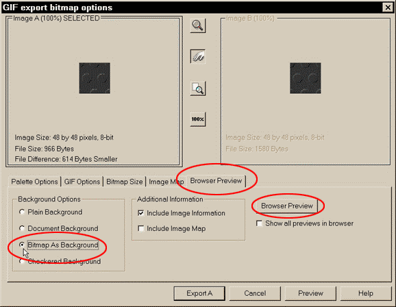 When you're tired of viewing the image, and the info, click Export A.