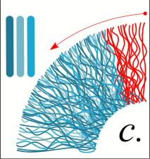 The iris is actually filled with thousands of fine fibers. To simulate this, a series of wavy lines are drawn within a 30° wedge with the Freehand Tool with the Smoothness Setting set to 20%. This produces a smooth curved line. The fibers (shown in red) are colored with three colors (shown on left). The wedge is grouped, (Arrange-Group) duplicated, (Edit-Duplicate) and rotated around the iris. Double click on the wedge, drag the rotation bullseye to the center of the iris, then hold down the Ctrl key and drag the wedge 30 degrees. Repeat this step until the iris is covered.