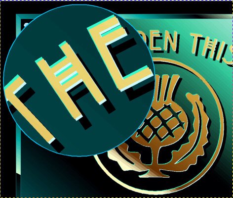 Draw’s Magnify Lens, lets you see how I’ve added two duplicates of the text and symbol to give the illusion of the design having been cut into the glass. One duplicate has been positioned up and left 1 point and the second duplicate has been positioned down and right 1 point. Both have been given a light fill, light aqua and pale blue. A black duplicate has been offset more to give the impression of a shadow falling on the surface behind the glass. Don't drive off, I’m just locking the door! Impatient cabbies-sheesh!