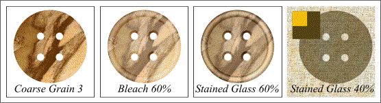 Place the bitmap button over the marble fill and apply a Bleach Transparency 60%. Make a duplicate of the bitmap (Ctrl-D) and change the transparency type to Stained Glass. This combines the best of Bleach and Stained Glass transparencies.
