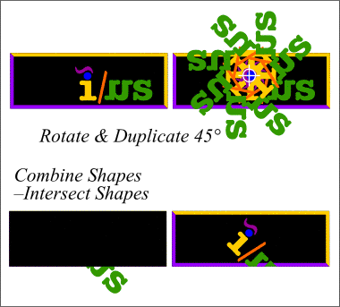 Here’s a special bonus. Chris Dickman asked me to create some banners to publicize our favorite web community. This one is actually 200% because at actual size it is too difficult to see the details. I created the button using the first technique of this tutorial to create the bevels. I placed the i/us logo in the right half of the button. I rotated and duplicated the logo using the dot of the i for the rotation center. I made eight copies of the button (with the rotated logos) then removed all but the appropriate logo in each frame of the rotation sequence. I made duplicates of all the buttons where the logo extended beyond the button’s border, and selected the logo and duplicate and Combined Shapes--Intersect Shapes. This eliminated all the logo but the portion within the button.