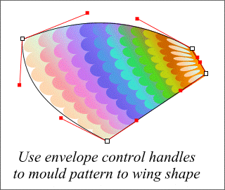 Drag the Envelope's control handles until the shape of the envelope matches the wing shape as shown. That looks more convincing now don't you think? Xara's